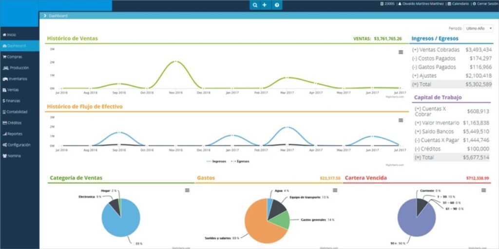 Indicador Financiero que nos permite visualizar de manera global la situación económica de la empresa por fechas, días, años. Analizando Ingresos/Egresos, Capital de trabajo, Saldo en Bancos, Gastos, Valor de Inventarios, Créditos de la empresa.